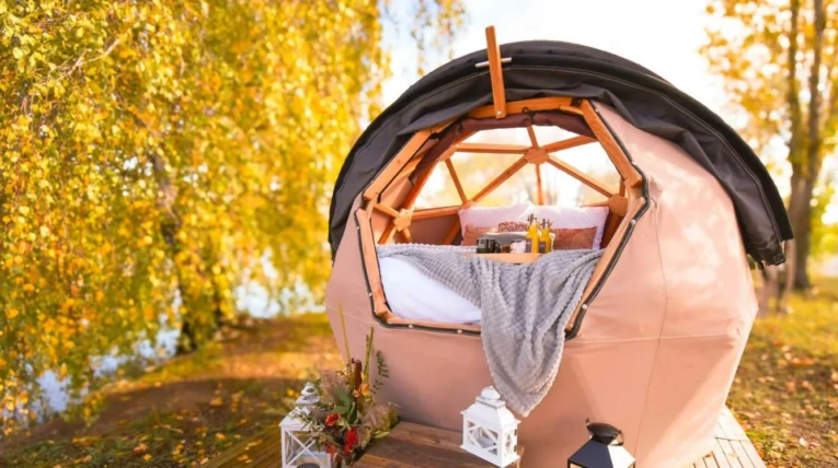 Véritable nid douillet pour deux, le dôme étoilé allie l’esthétique à la magie d’une bulle ouverte sur la nature