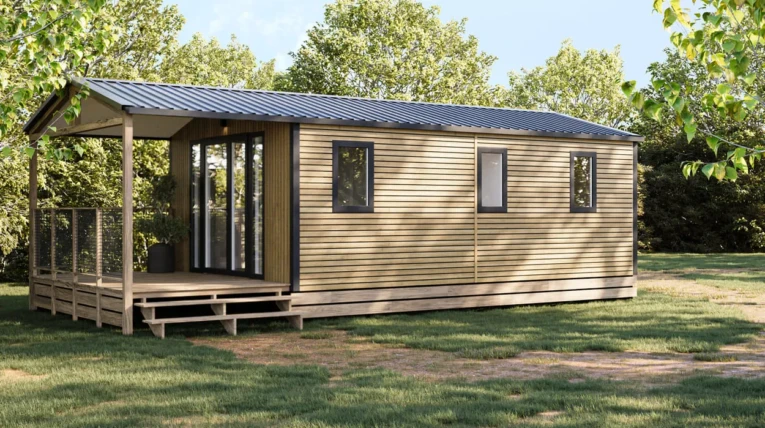 Grâce à sa circulation fluide et ergonomique, notre Mobil-Home 24m2 – 2 chambres vous offre un accès direct à la terrasse.